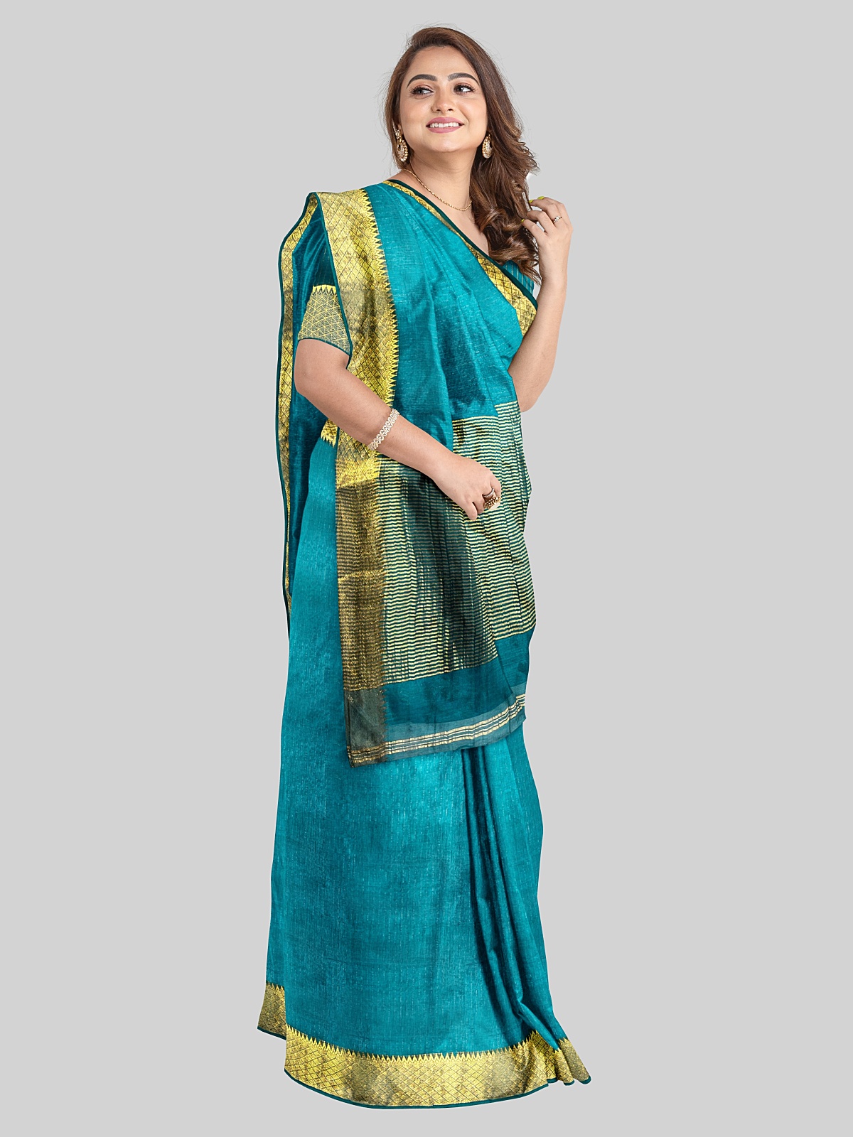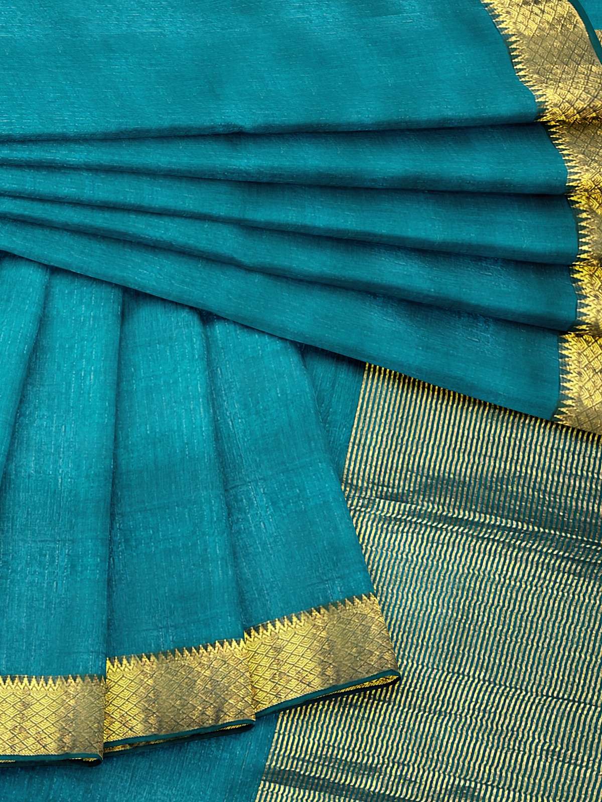 Saree: Aqua Blue with Copper Zari Putti Border and Phera Weaving on Pallu
