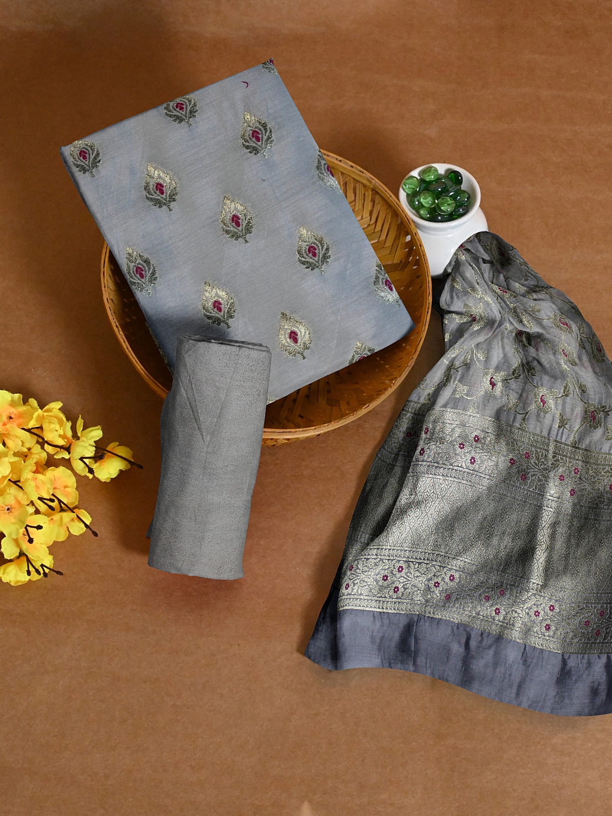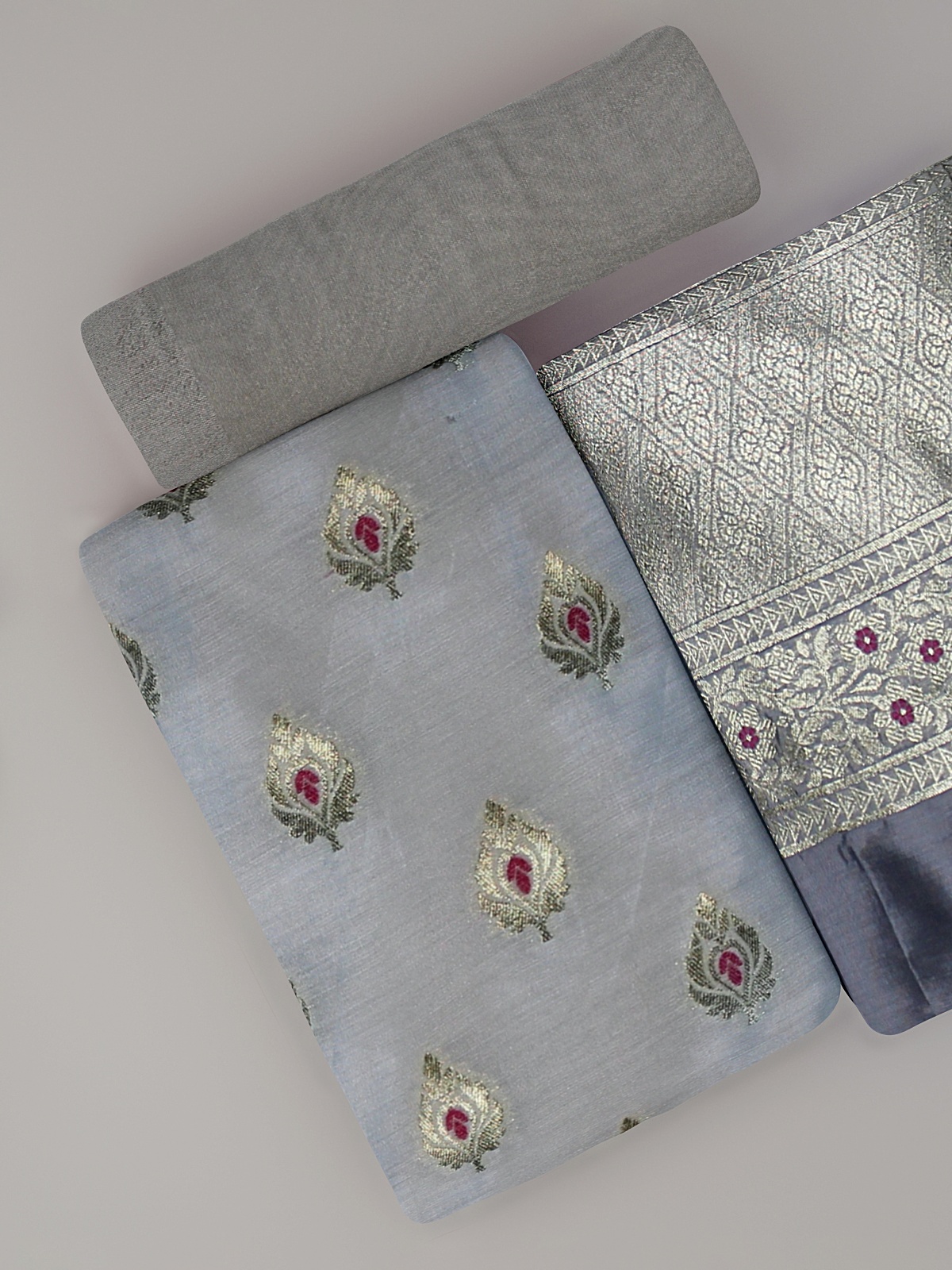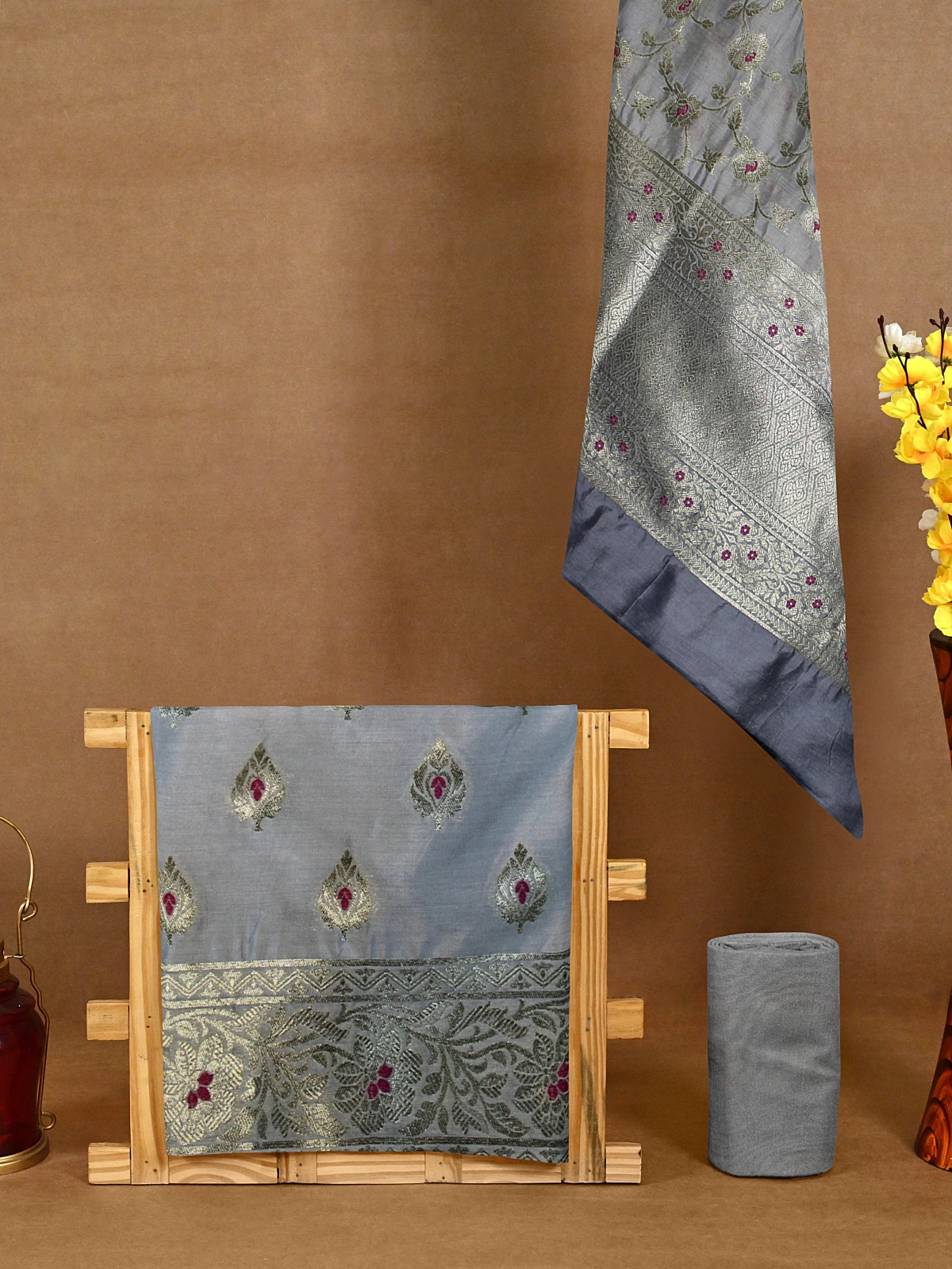 Color - Top -Lighr Grey with meenakari and zari buti and border