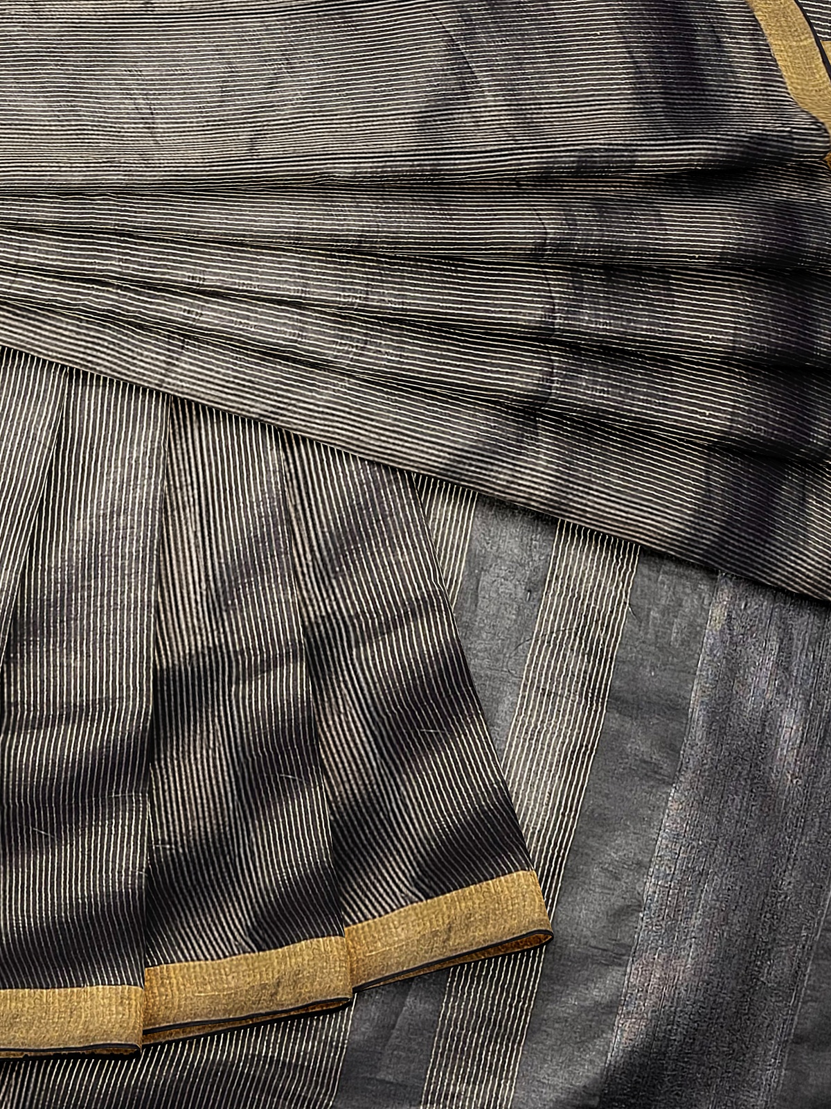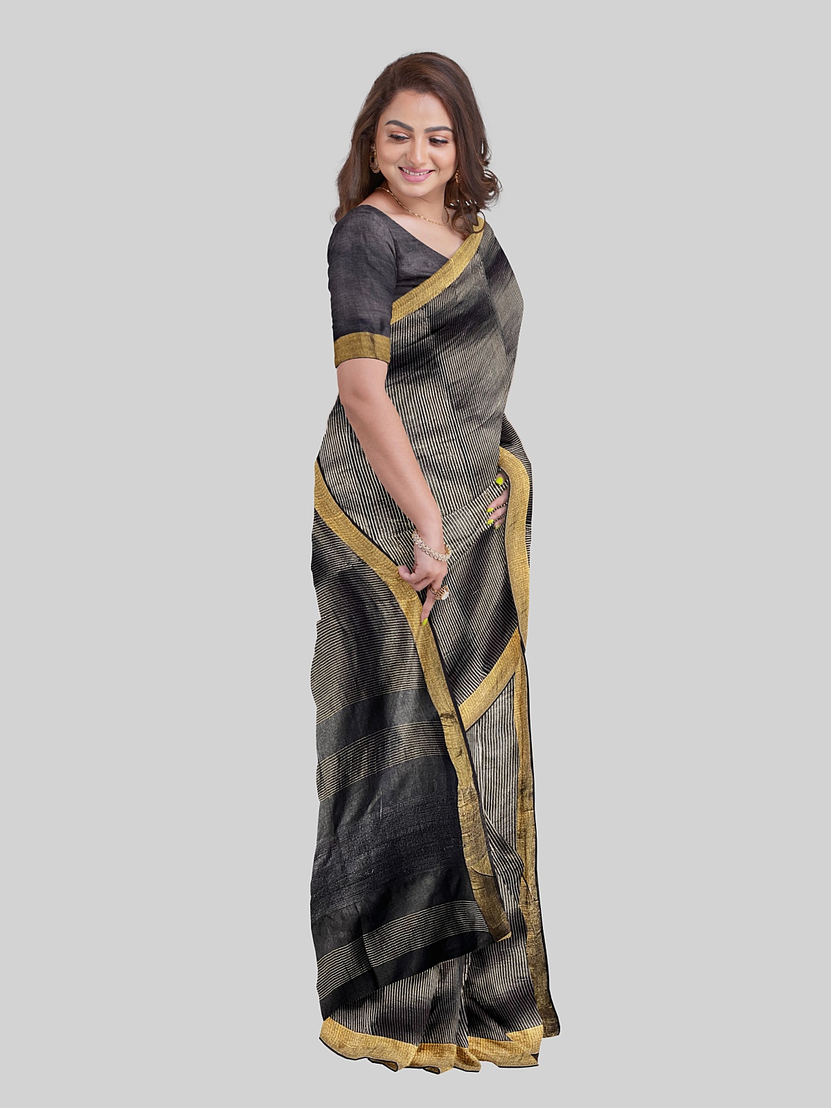 Saree: Black (with golden zari phera weaving and black ghicha tussar on the pallu)