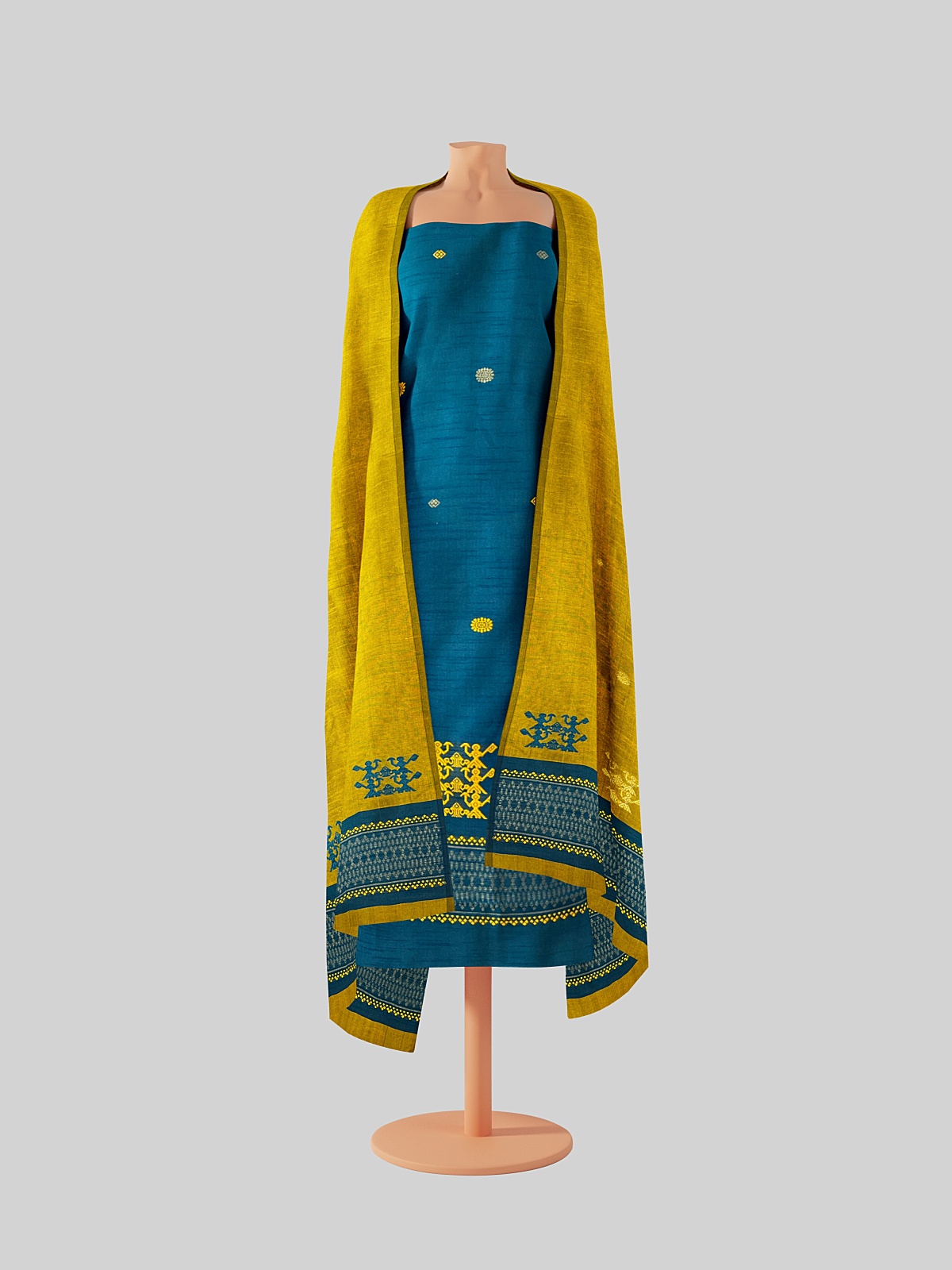 Dupatta: Yellow with intricate weaving on both ends