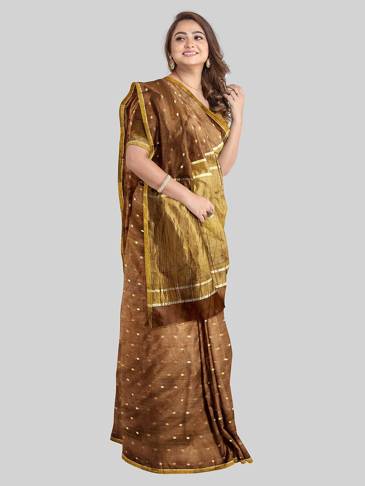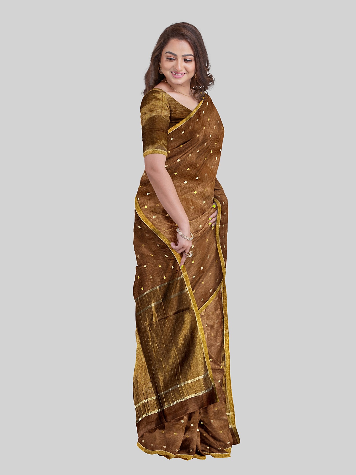 Saree: Brown with sona rupa khapa buta weaving and zari weaving on the pallu