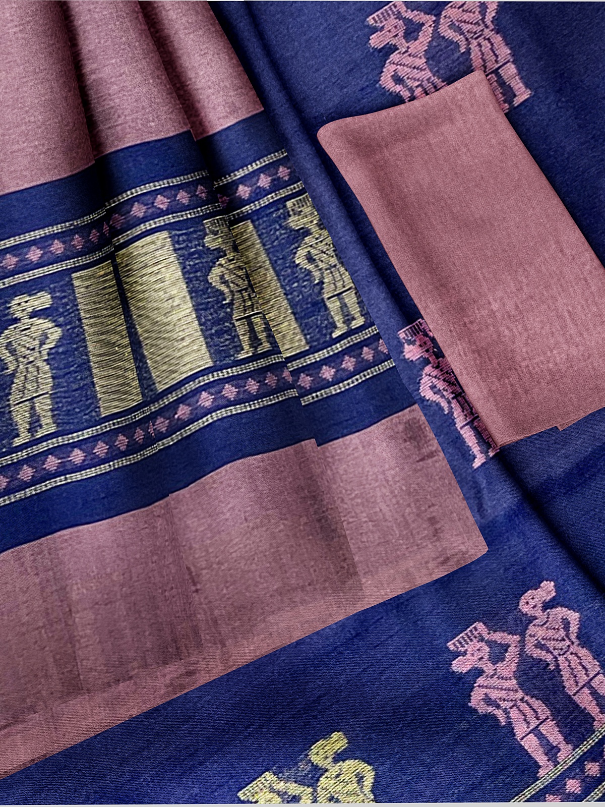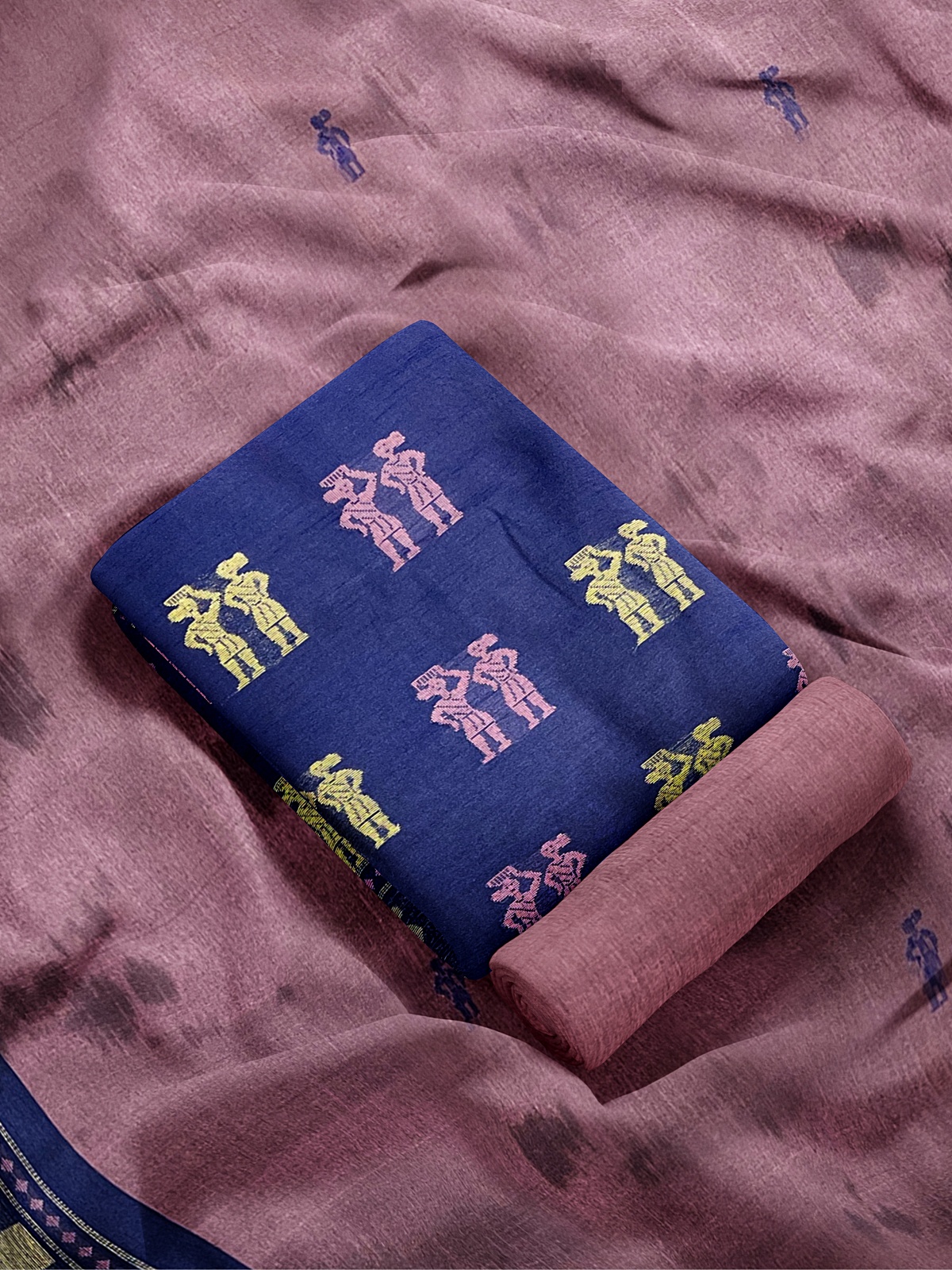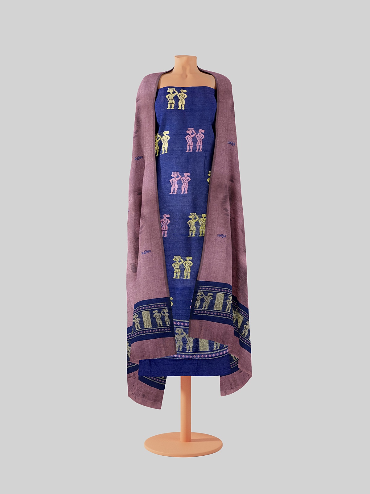 Top: Dark Blue with jaala weaving featuring two farmers as butas and border