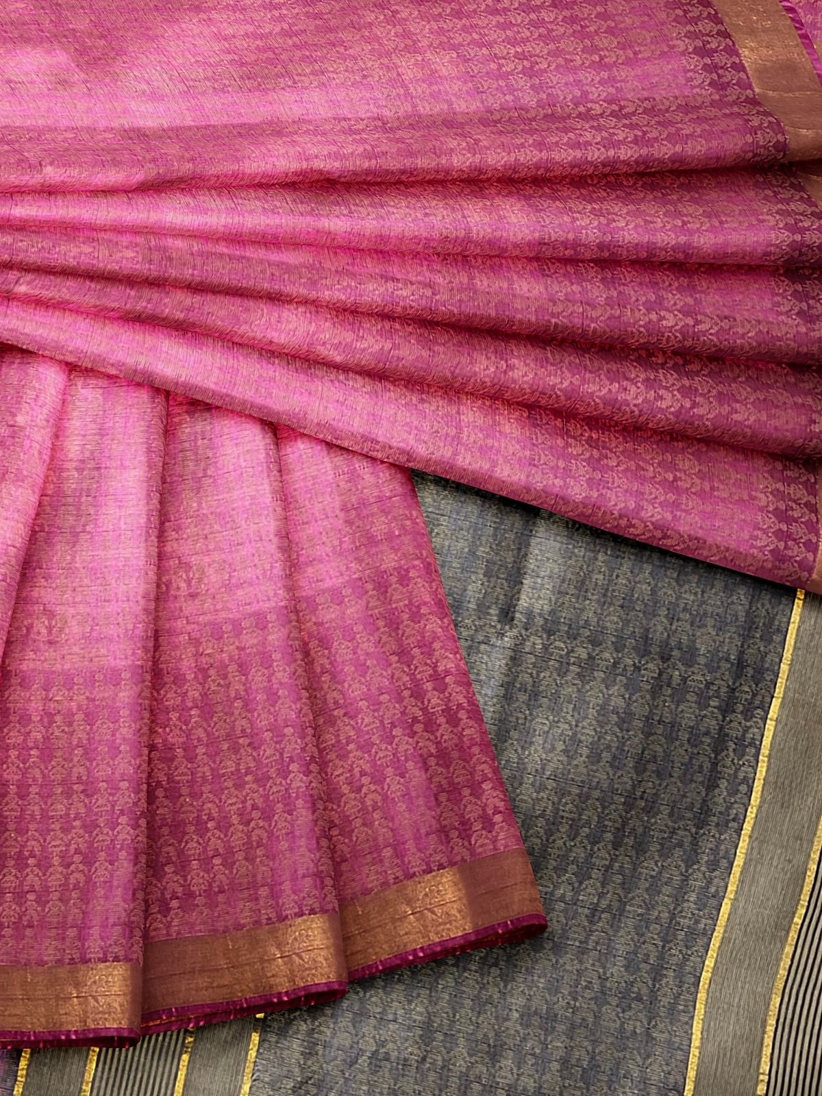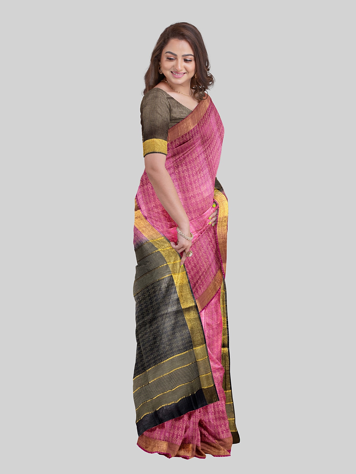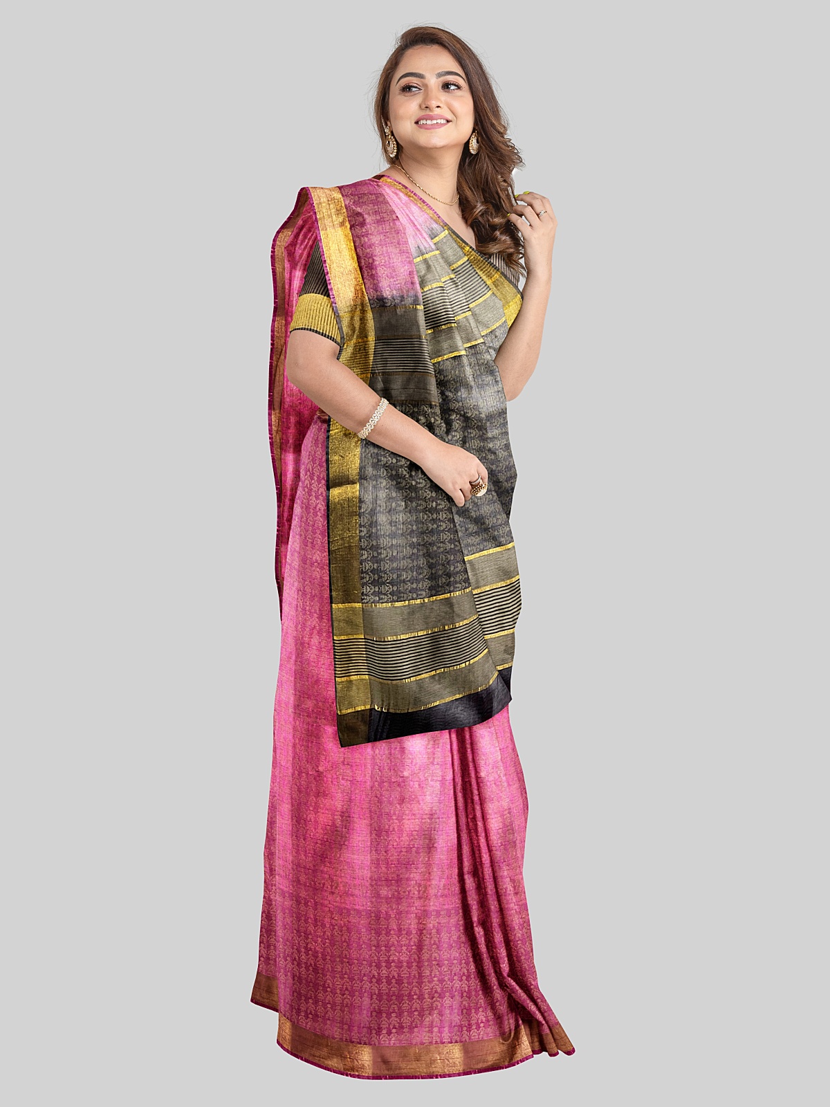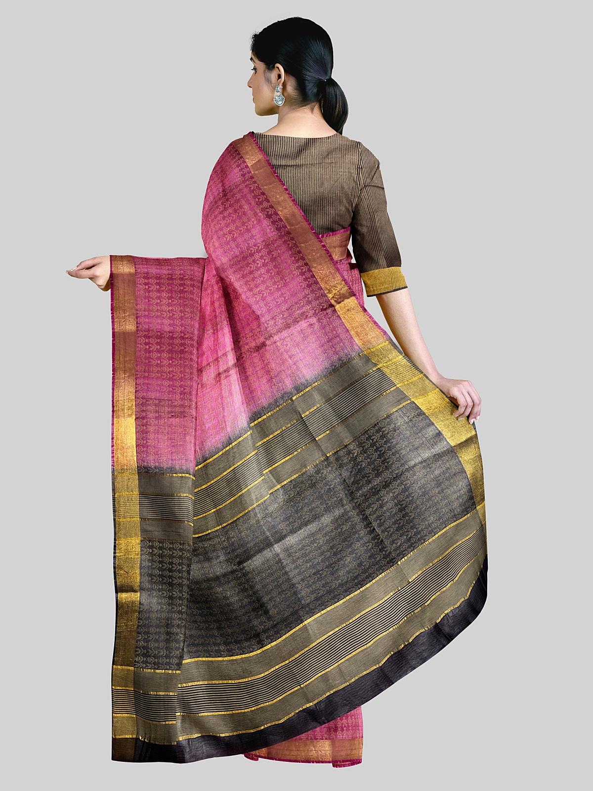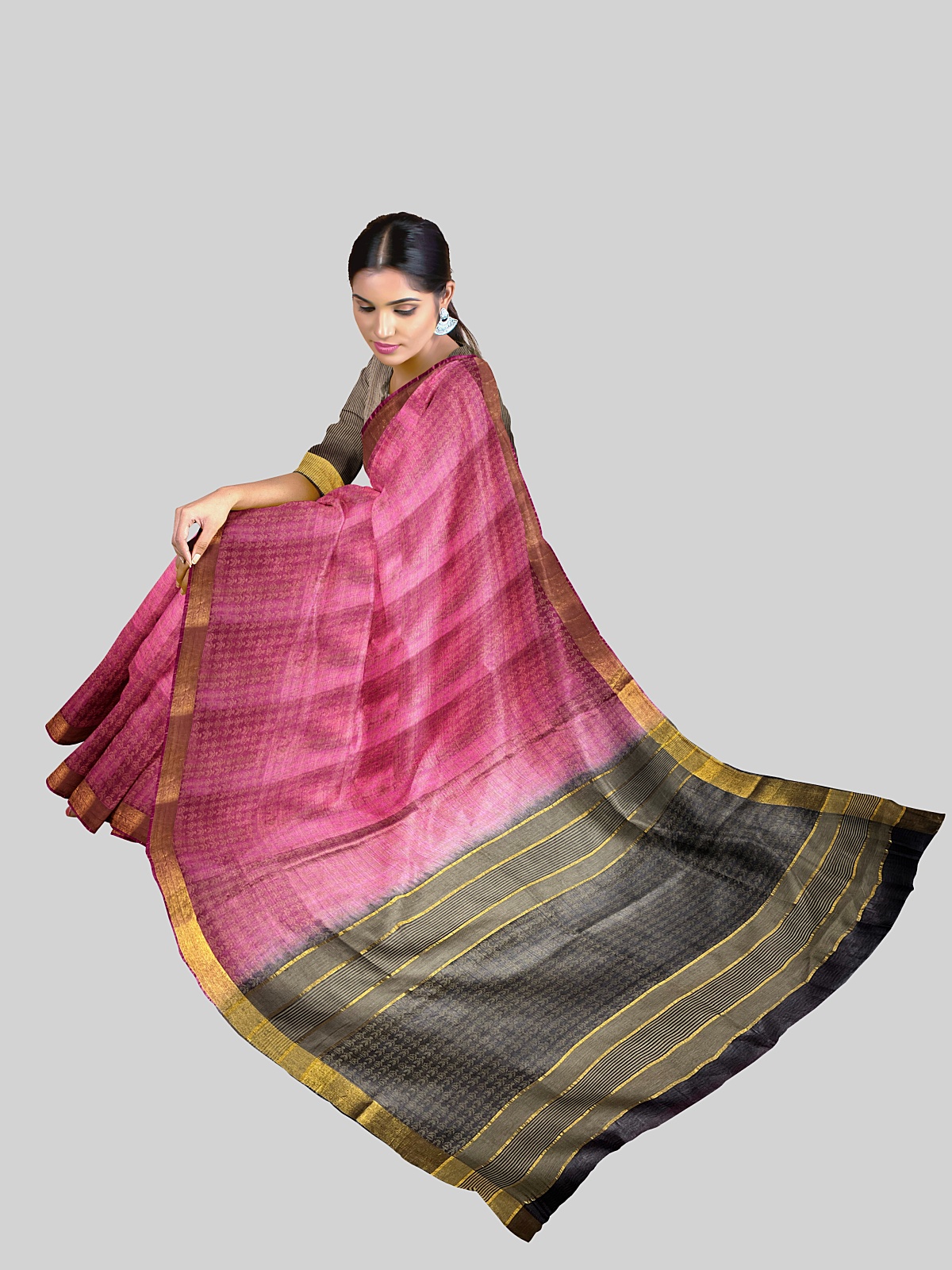 Saree: Dual shade of Pink and Black palla with intricate doll weaving all over and zari border