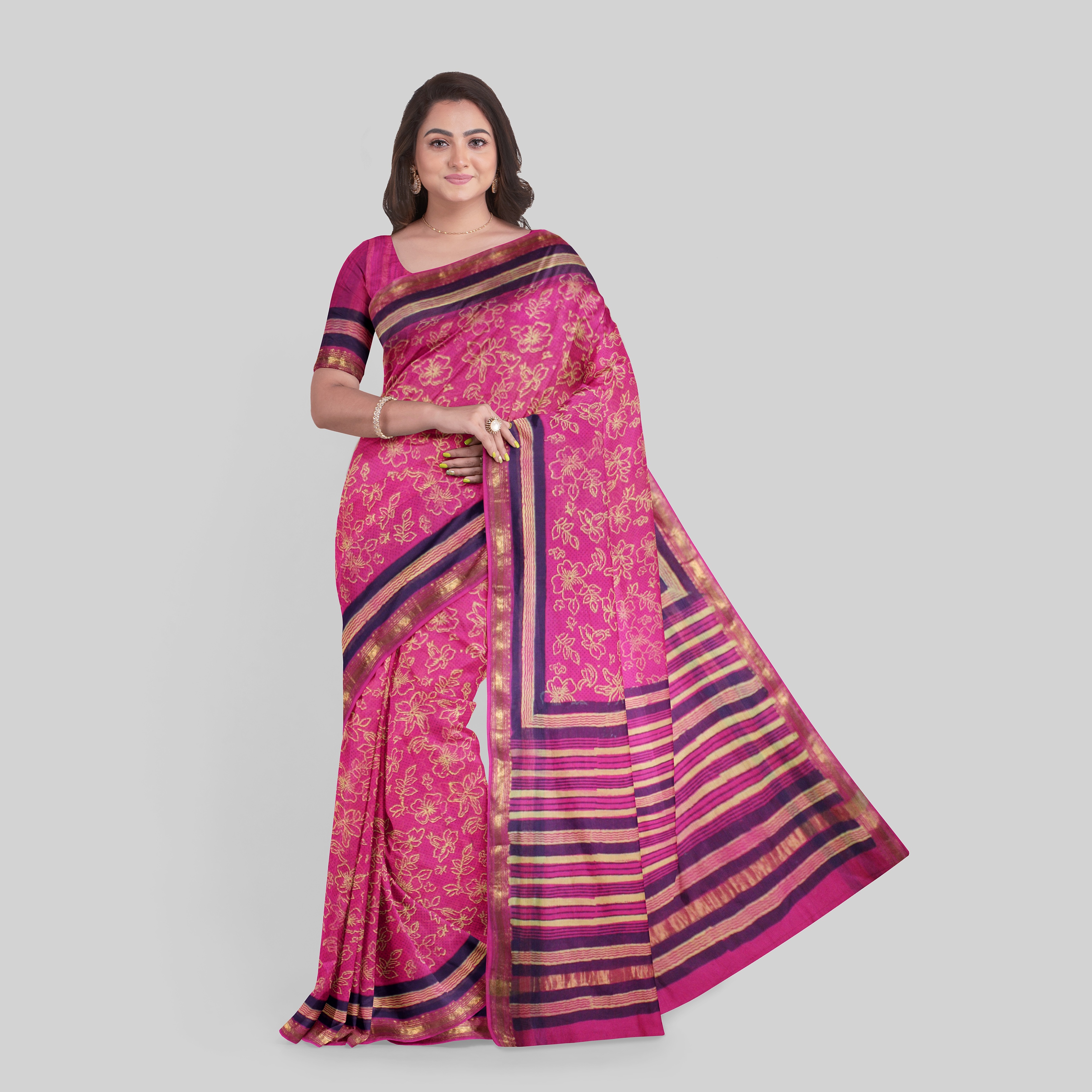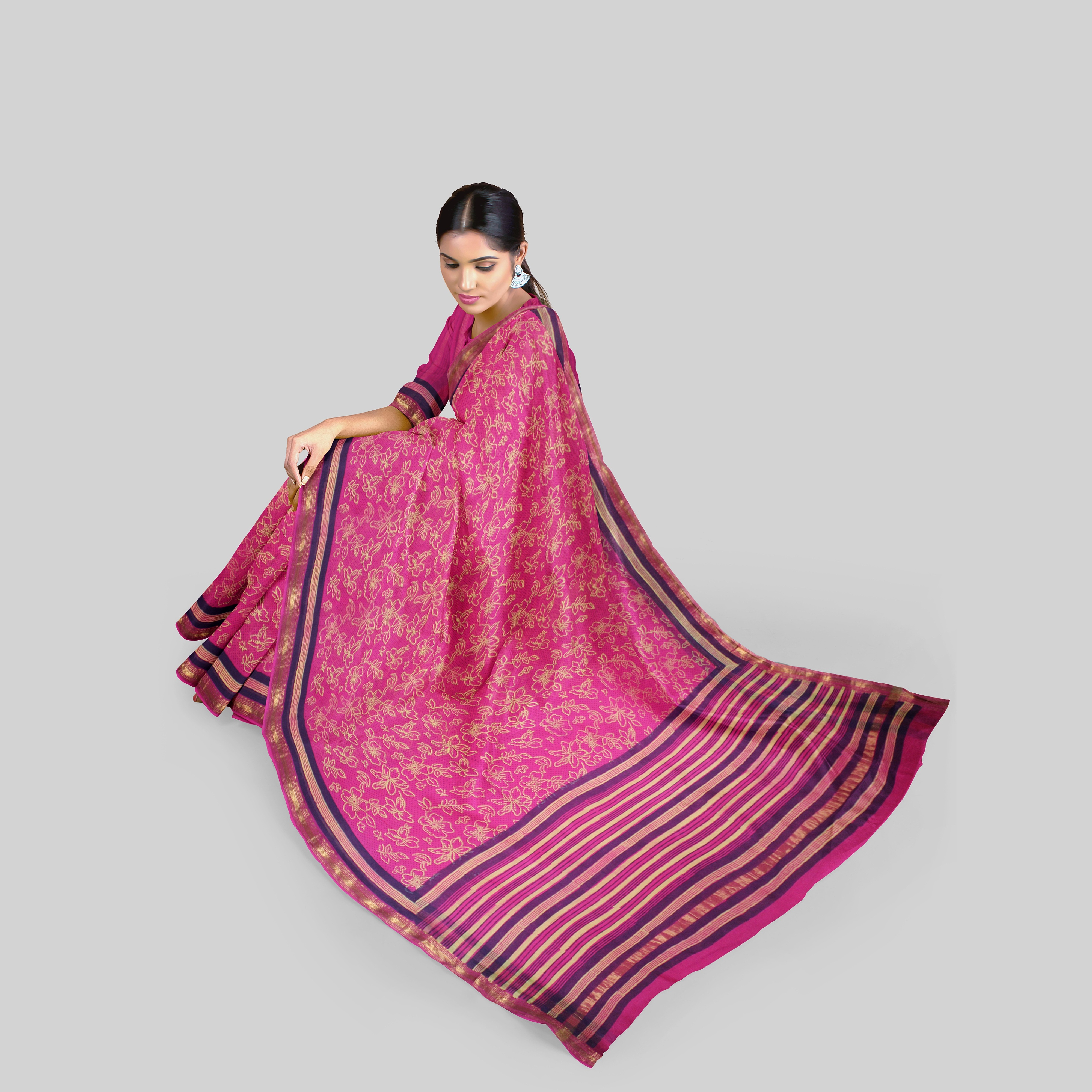 blouse- approx 1m unstitched blouse of same color and fabric with border (woven with the saree)