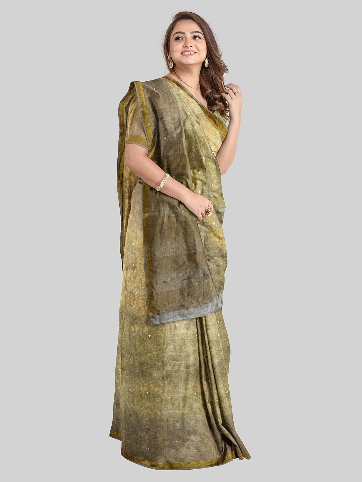 Saree: Golden with sitara buta weaving