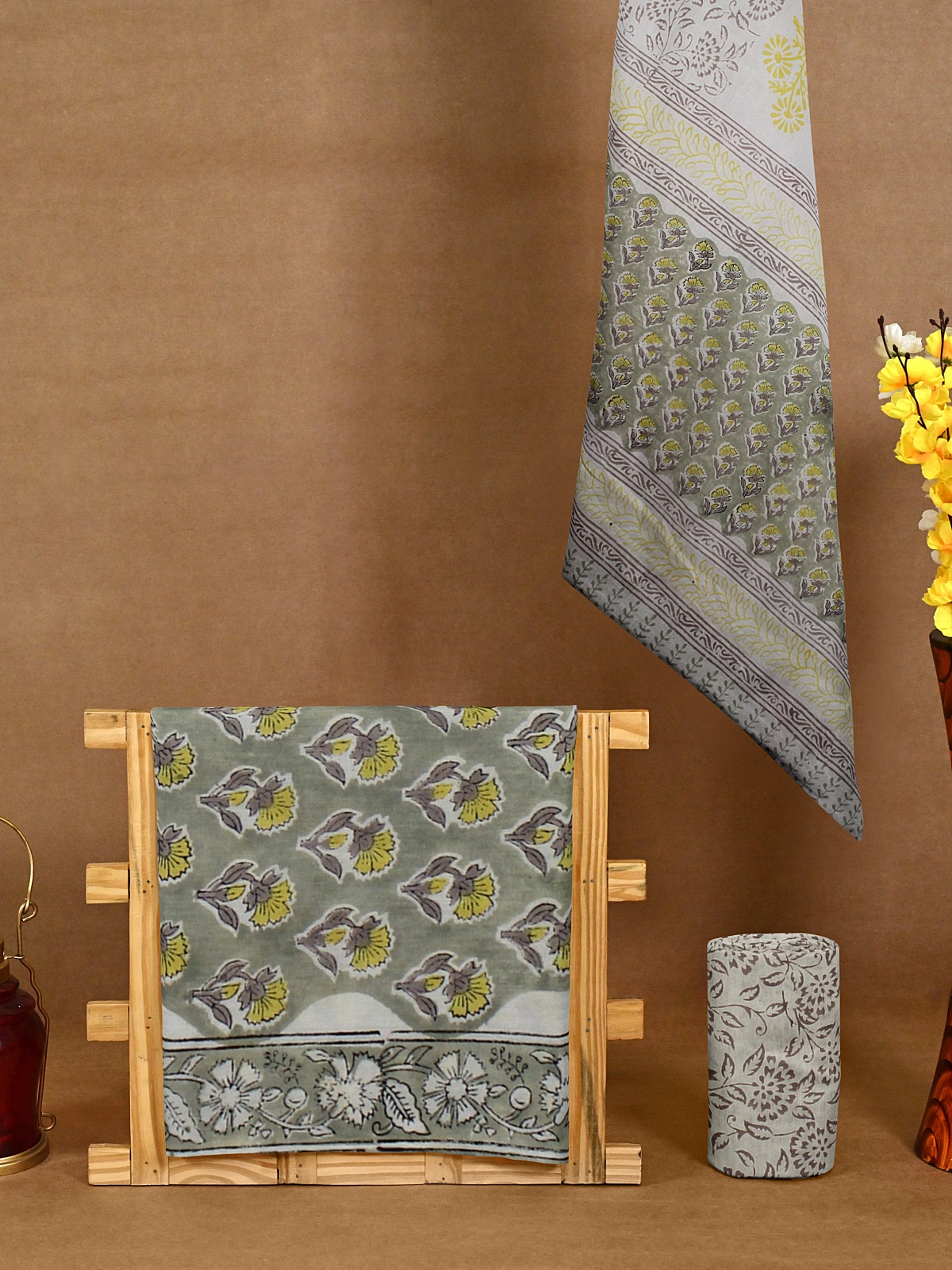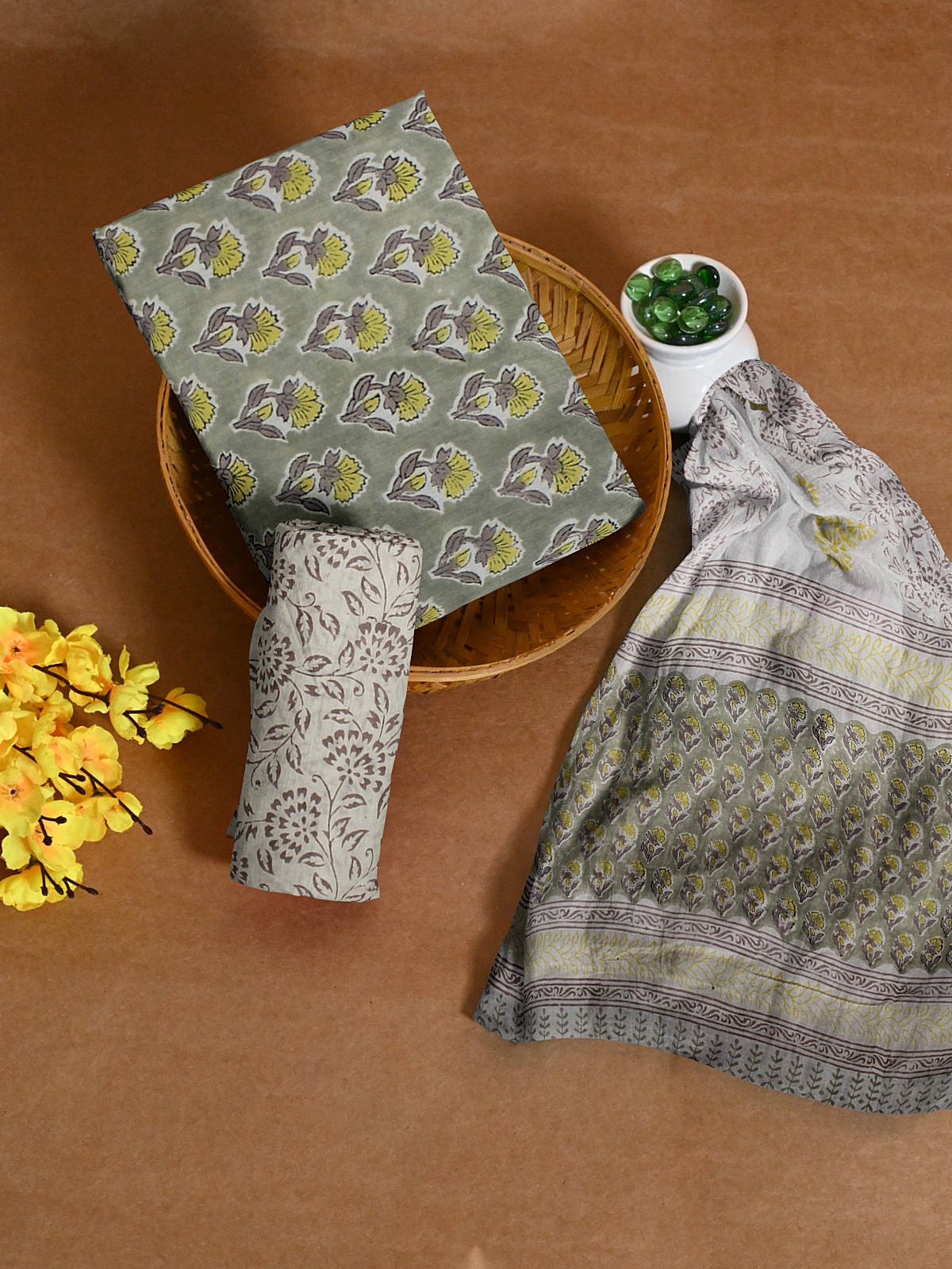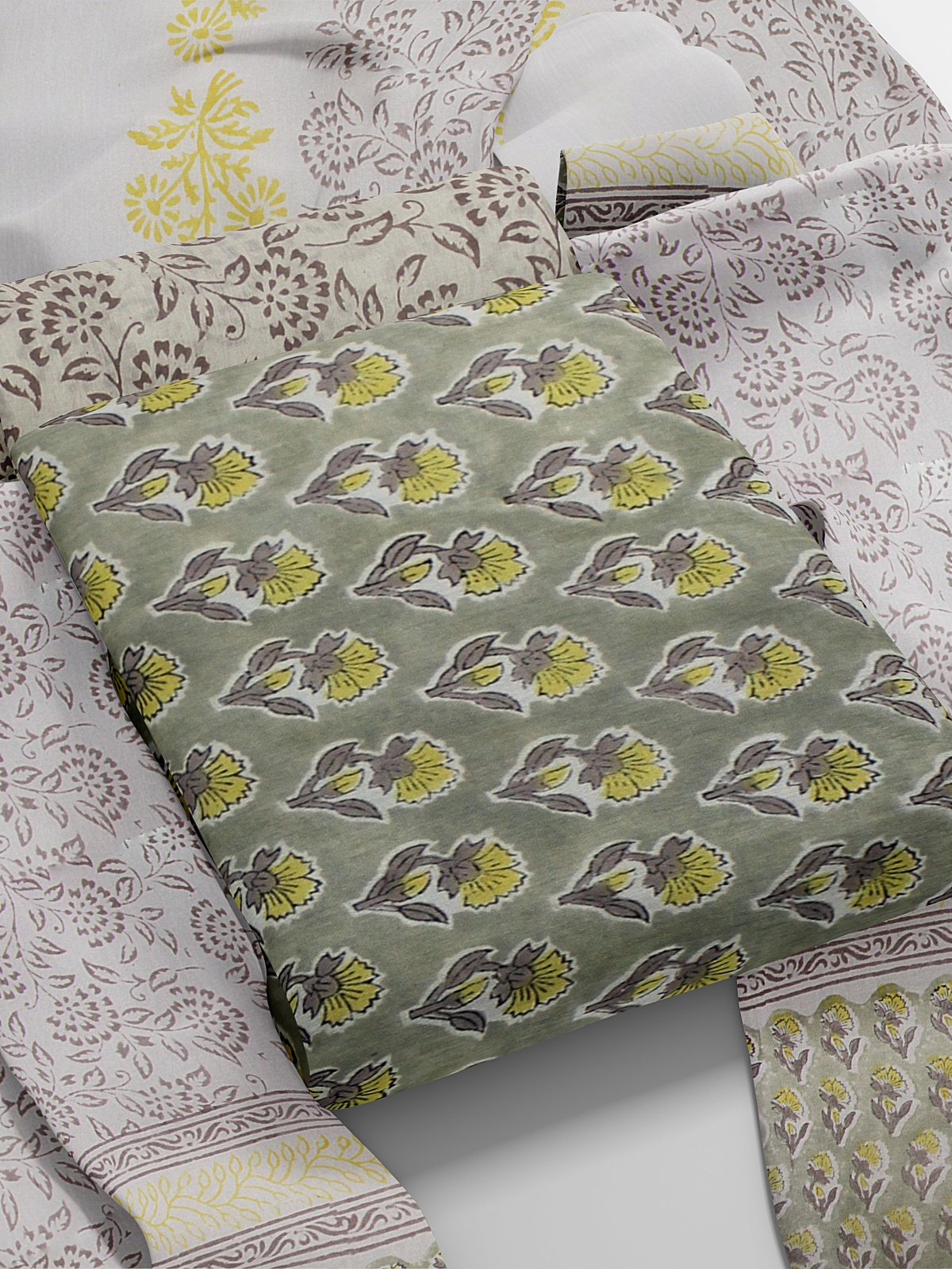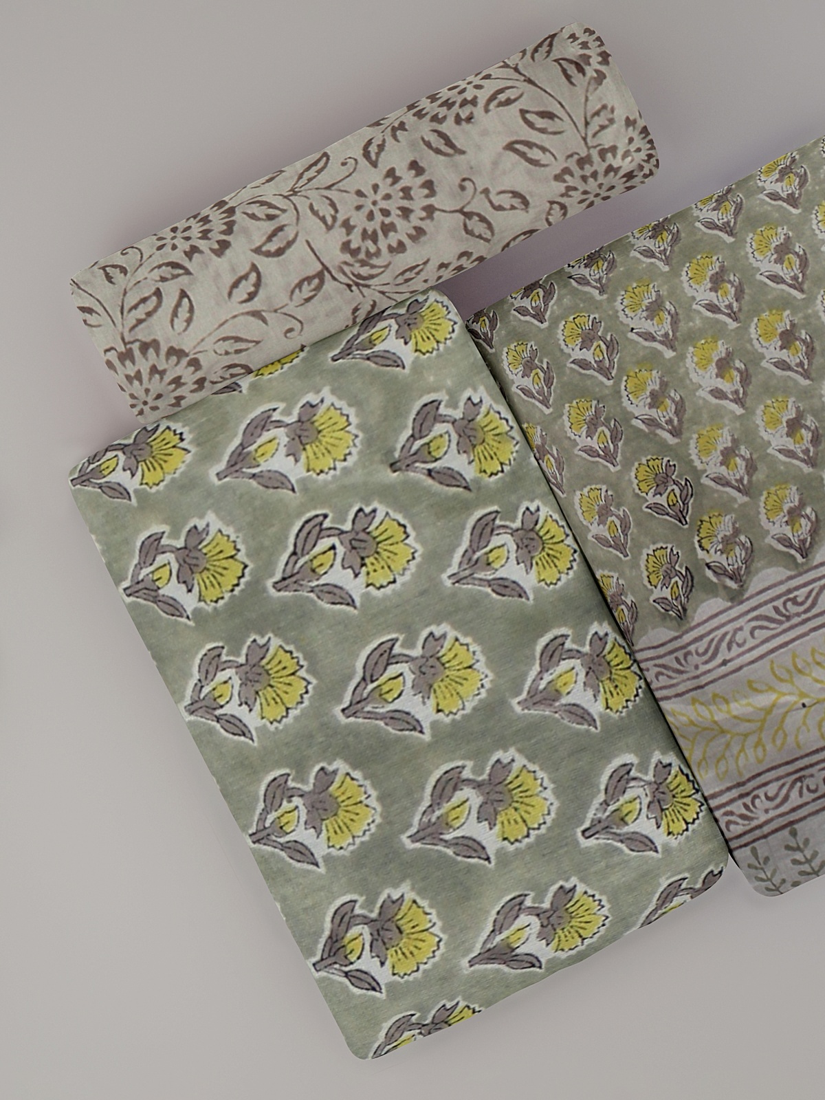 Top - Light Grey (with yellow and grey floral block print allover with border)
