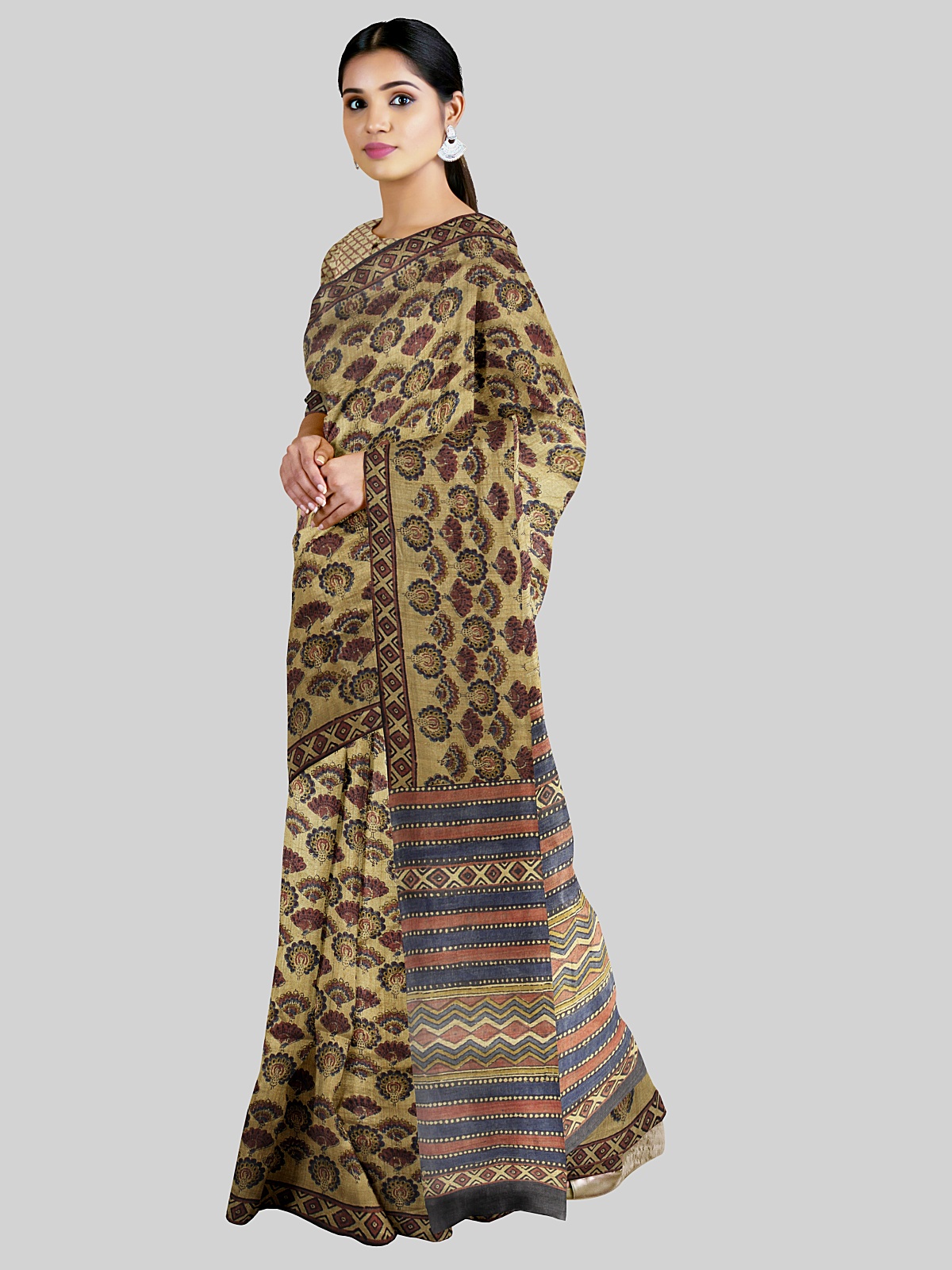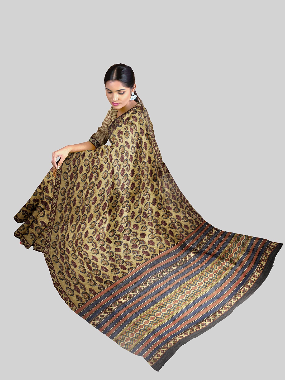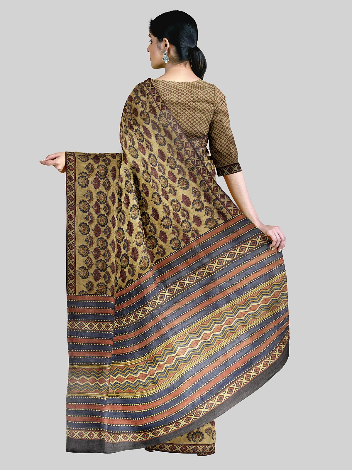 blouse- approx 1m unstitched printed blouse of same colour and fabric (woven with the saree)