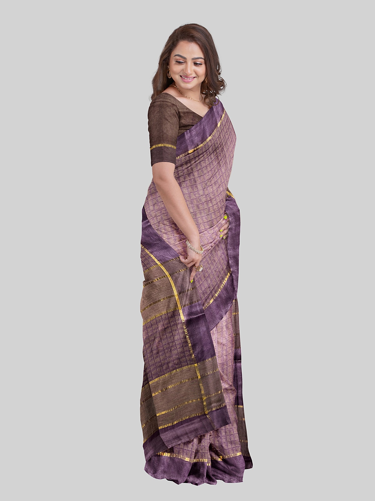 Saree: Mauve with intricate chess piece weaving all over and zari border