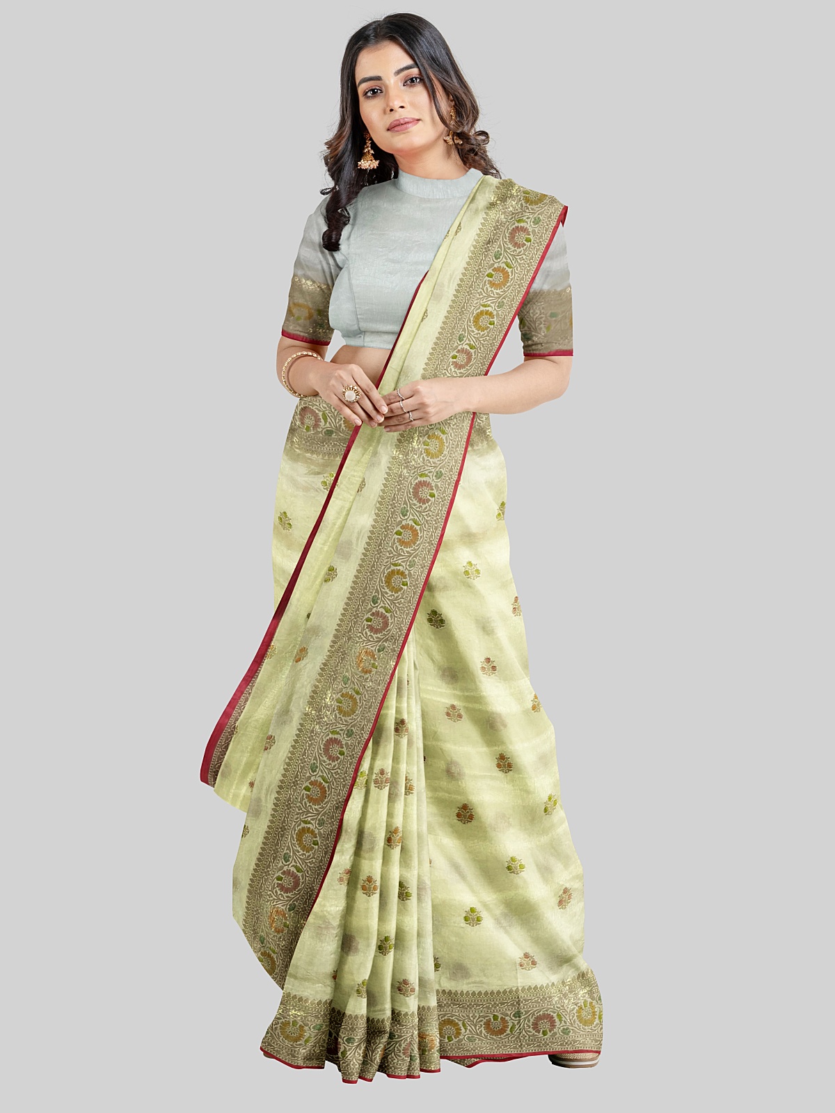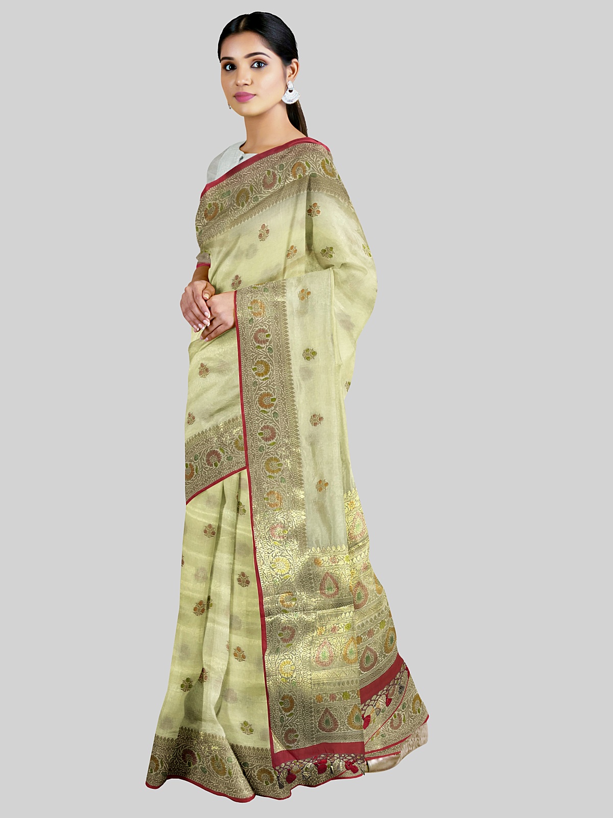 Colour - Cream ( with meenakari work border & meenakari buti all over saree)