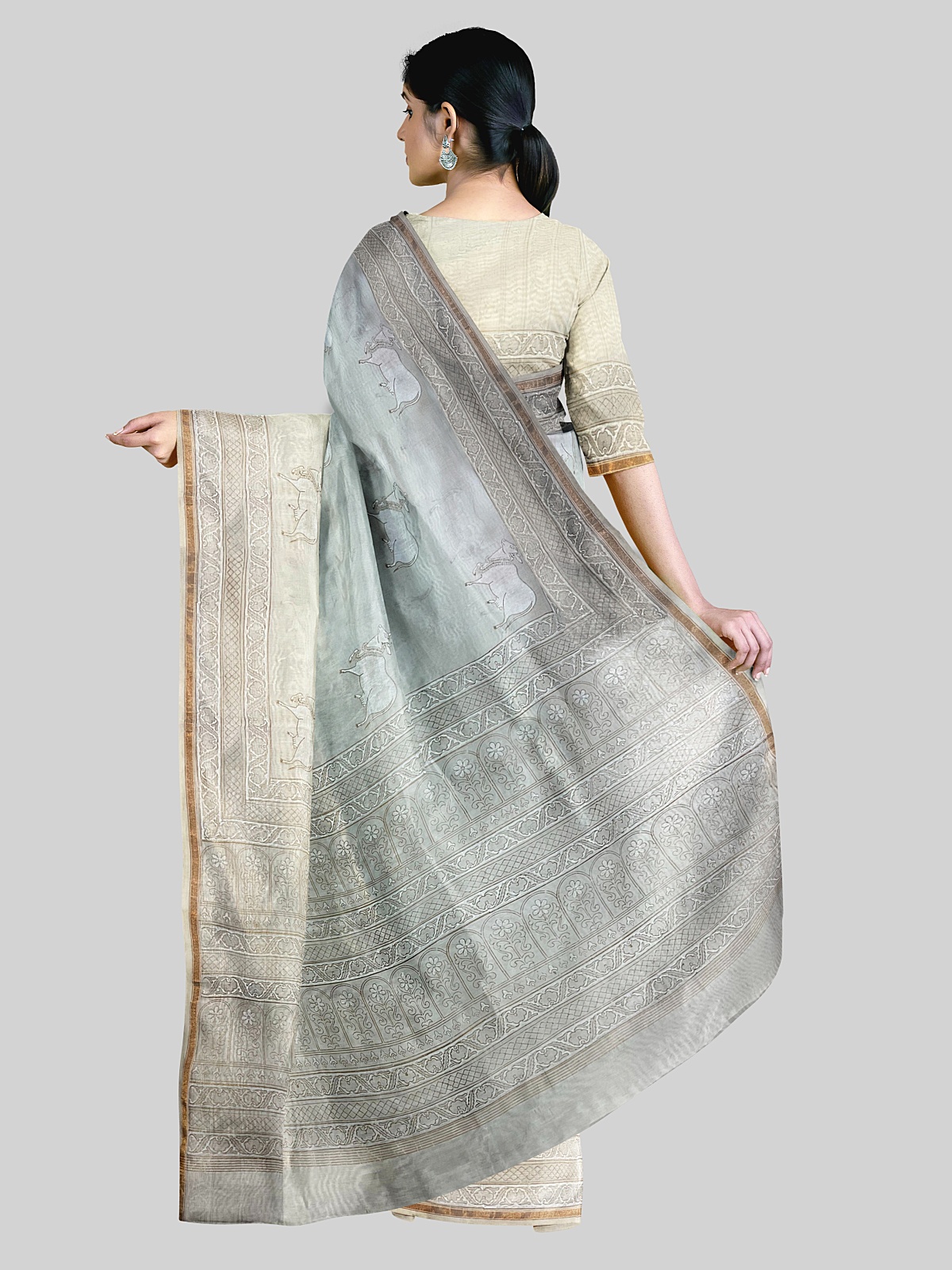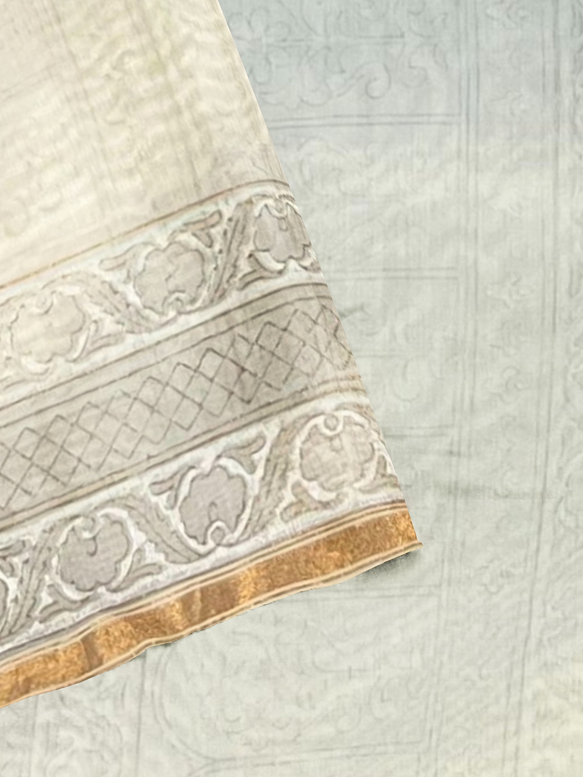 Blouse - Approx 1m unstitched blouse of same colour and fabric with blockprint design (woven with the saree)