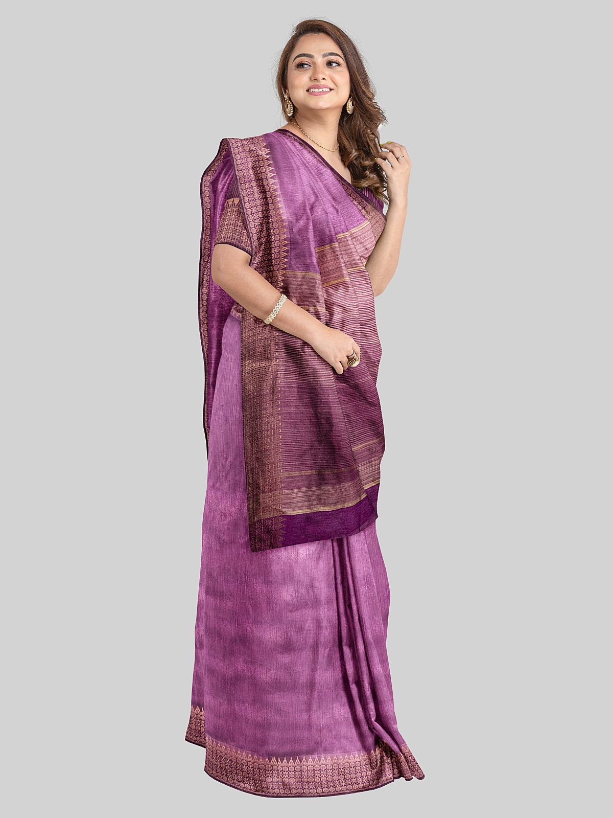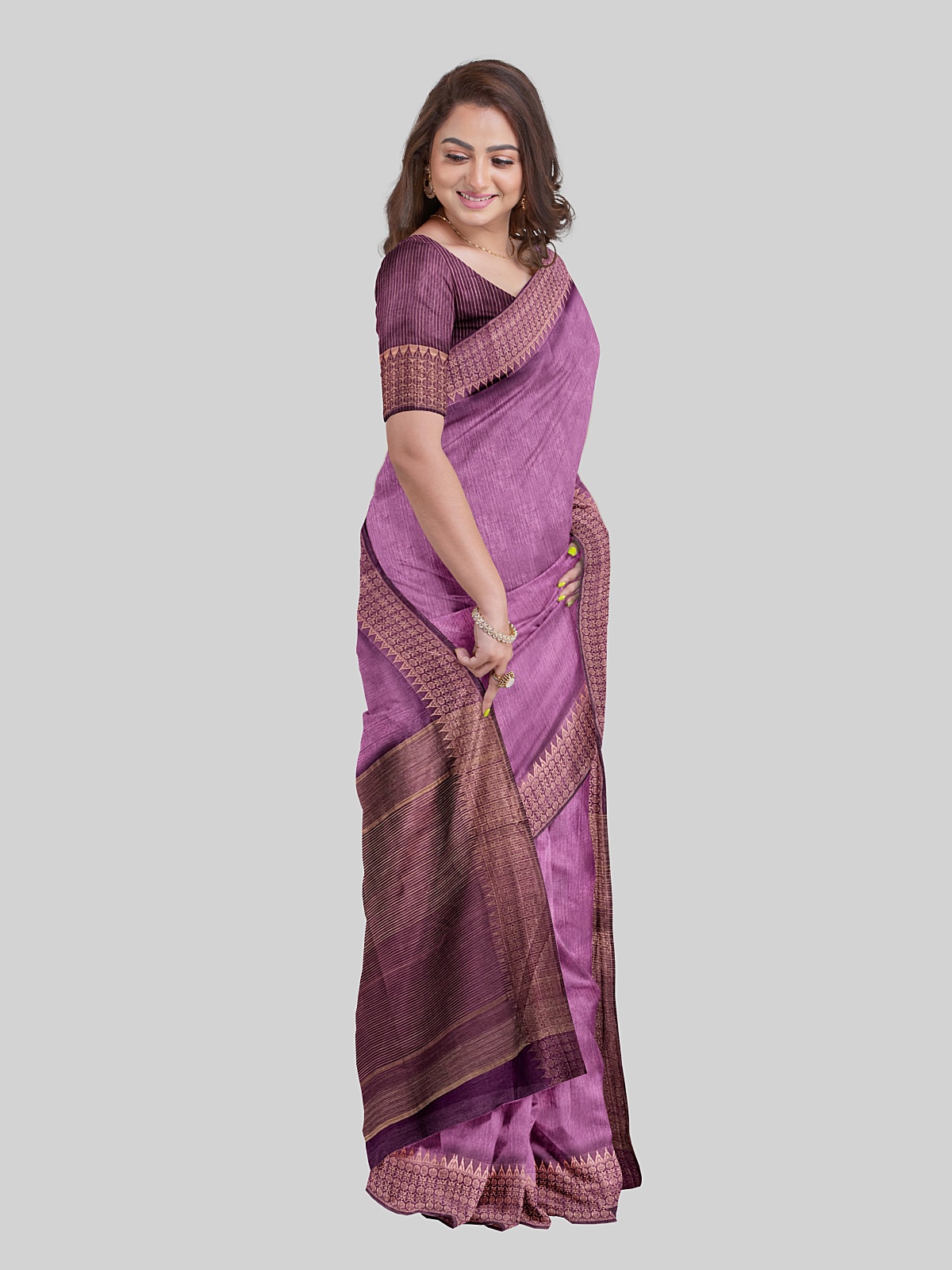 Saree: Purple with Bobby border and tan khapa weaving on the pallu