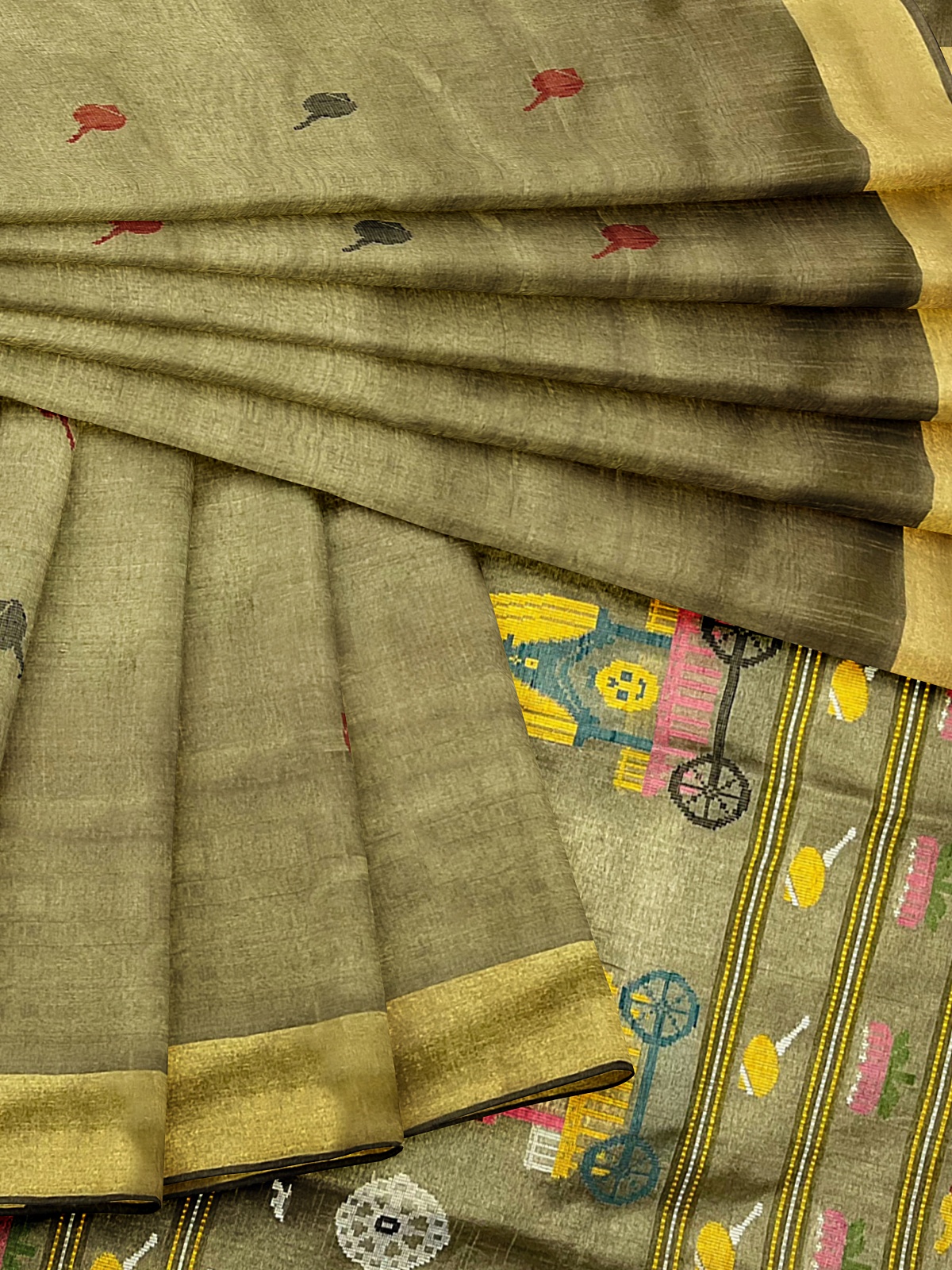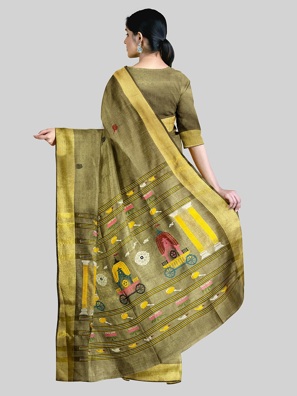 Saree: Sand color with buta and Rath Yatra-inspired jaala weaving on palla