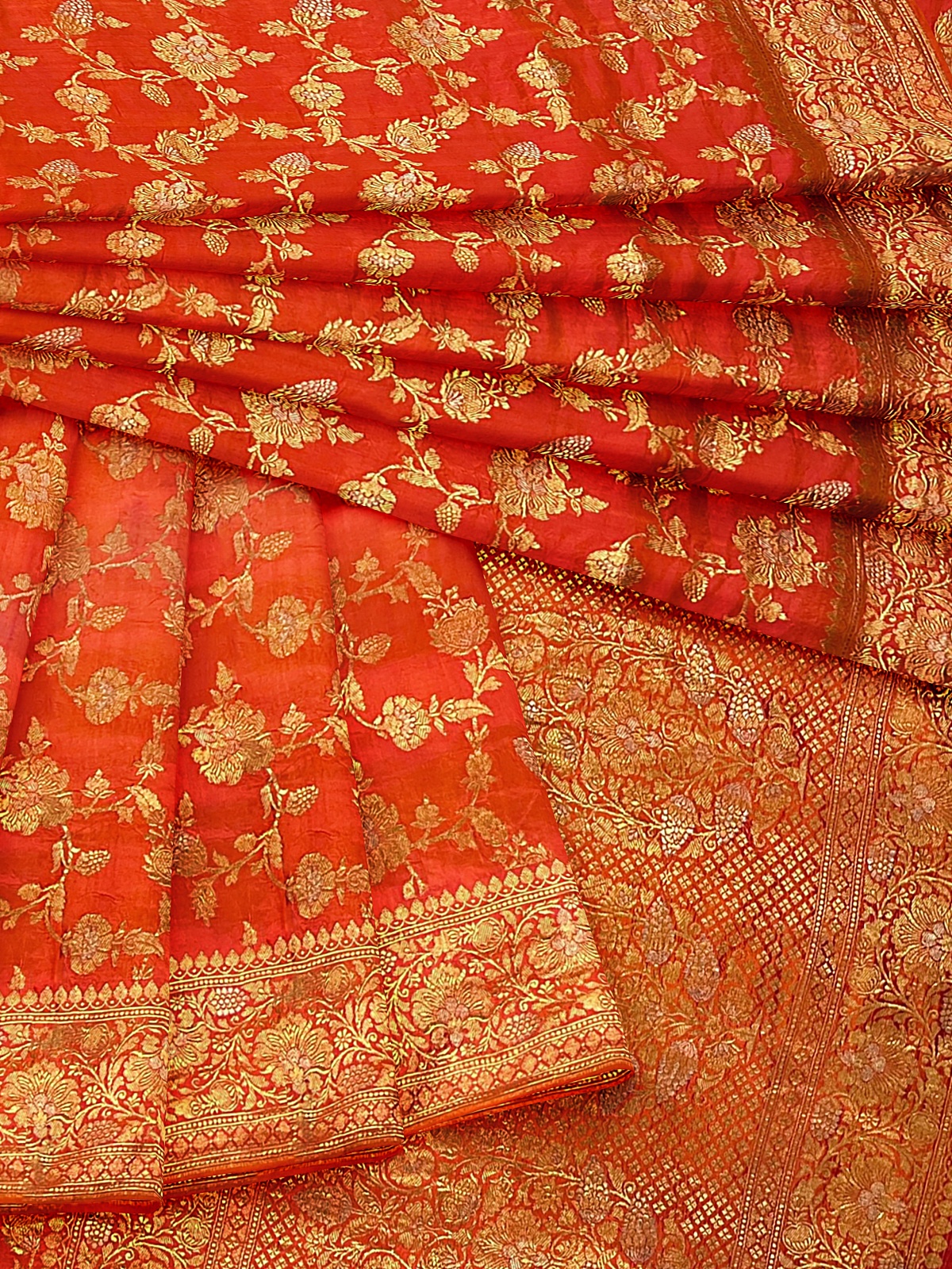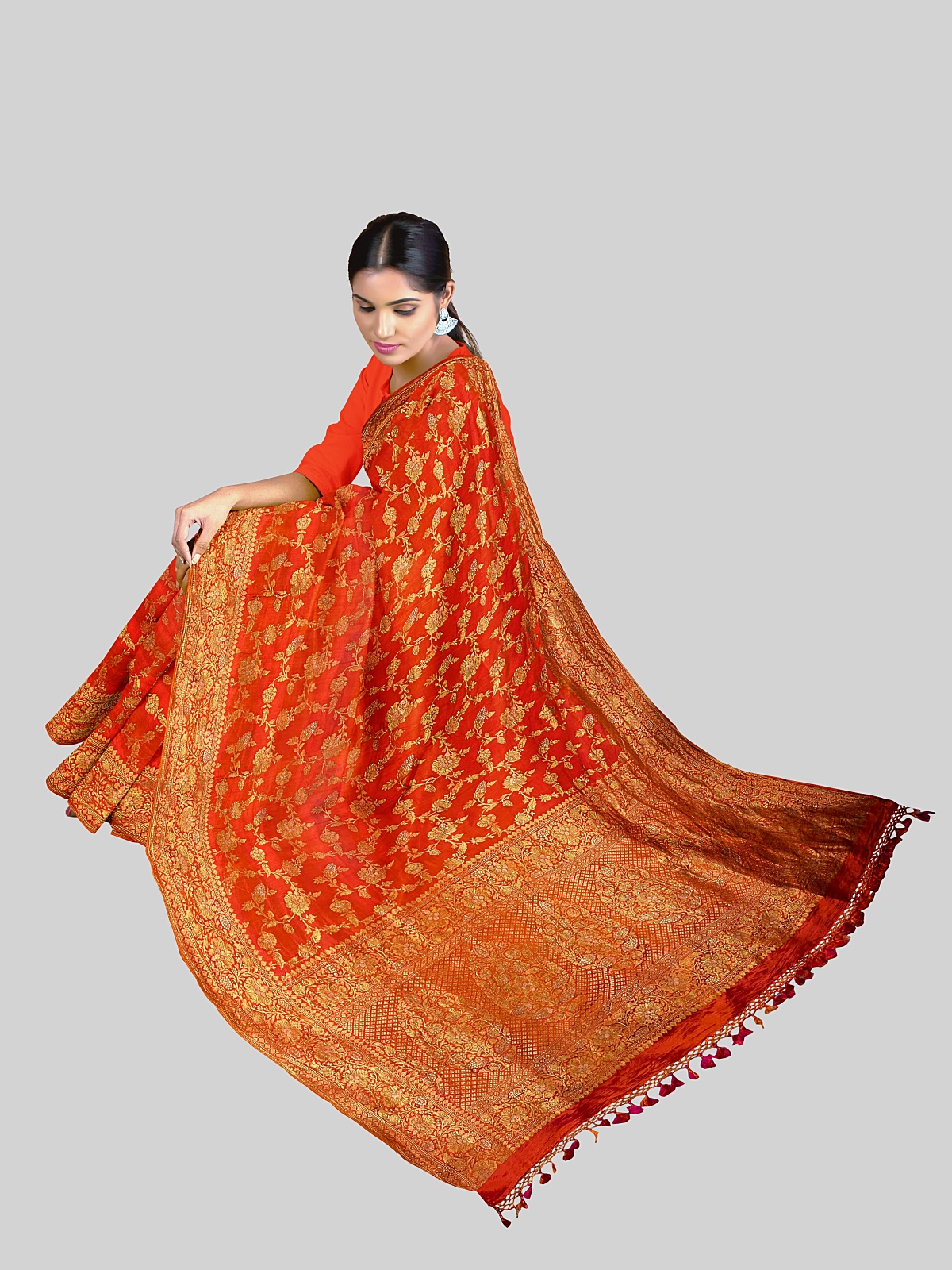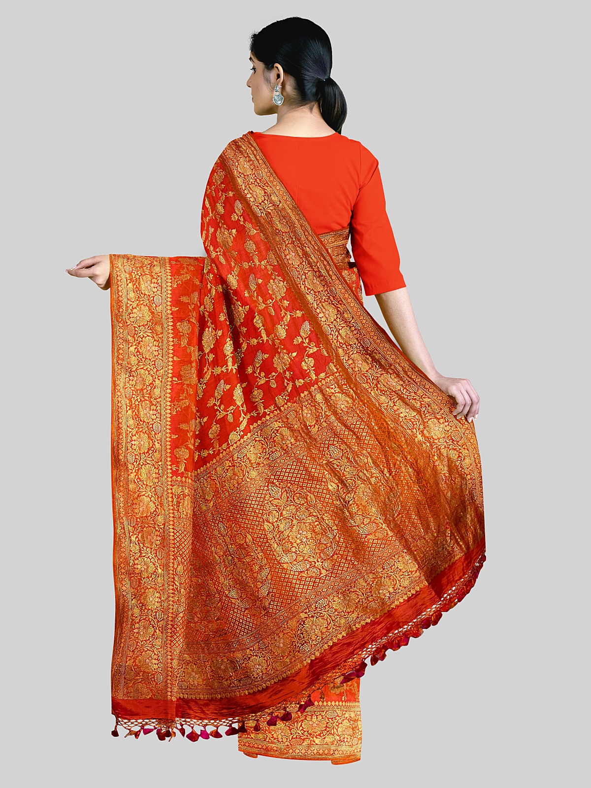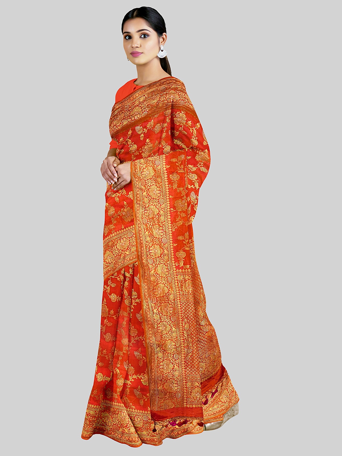 Color - Orange with hue of pink shade (with floral jaal weaving and border)
