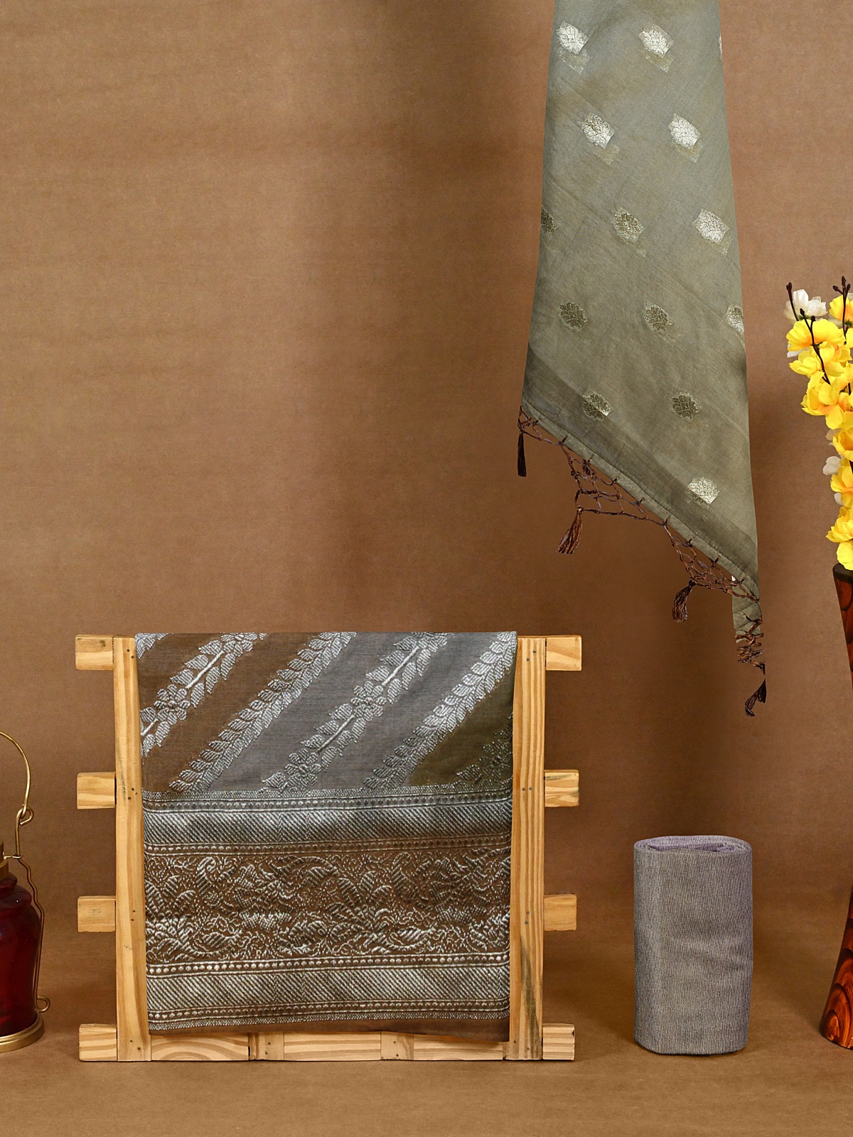 Dupatta - Brown Rust dupatta with zari buta and orange rust border